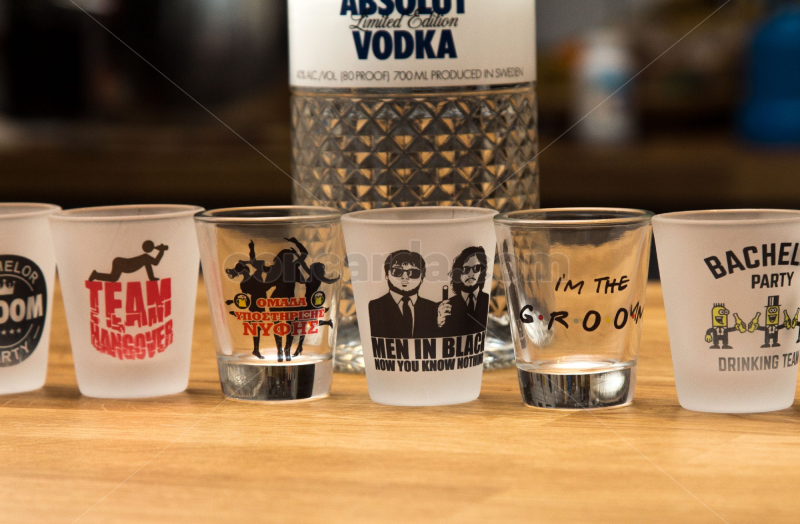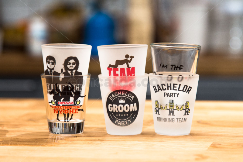 Σφηνοπότηρα γυάλινα πρώτης ποιότητας με εκτύπωση από 1 τεμάχιο, με δικά μας σχέδια ή και το δικό σας, ιδανικό για μπομπονιέρες γάμου, για το bachelor ή το bachelorette. Για παραπανω πληροφορίες δείτε το ηλεκτρονικό μας κατάστημα εδώ
